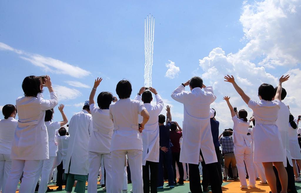 ニュースでは、大勢の医療関係者が空を見上げ、拍手していた。