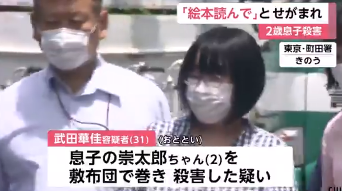 武田華佳容疑者(31)は23日、東京・町田市の自宅で、息子の崇太郎ちゃん(2)を敷布団で巻いて殺害した疑いが持たれている。