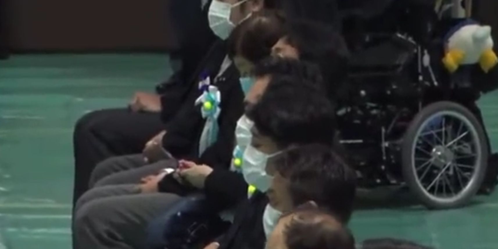 コロナ対策だけでなく、炎症起こさんか心配で止めよかと思ったけど、式前で声出すの憚られた。福島さんにはツイッターもブロックされてるから誰か教えたげて。