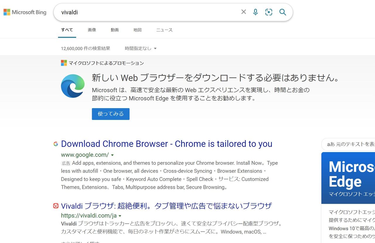 昔っからBingウザかったし、これからもエッジは選択肢にねーわ