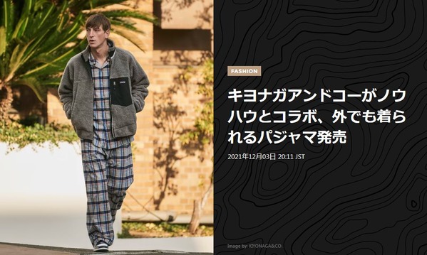 キヨナガアンドコーがノウハウとコラボ、外でも着られるパジャマ発売