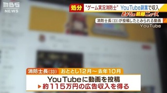 副業として「ゲーム実況動画」をYouTubeに投稿して100万円以上の収益を得ていた消防士が処分されました。