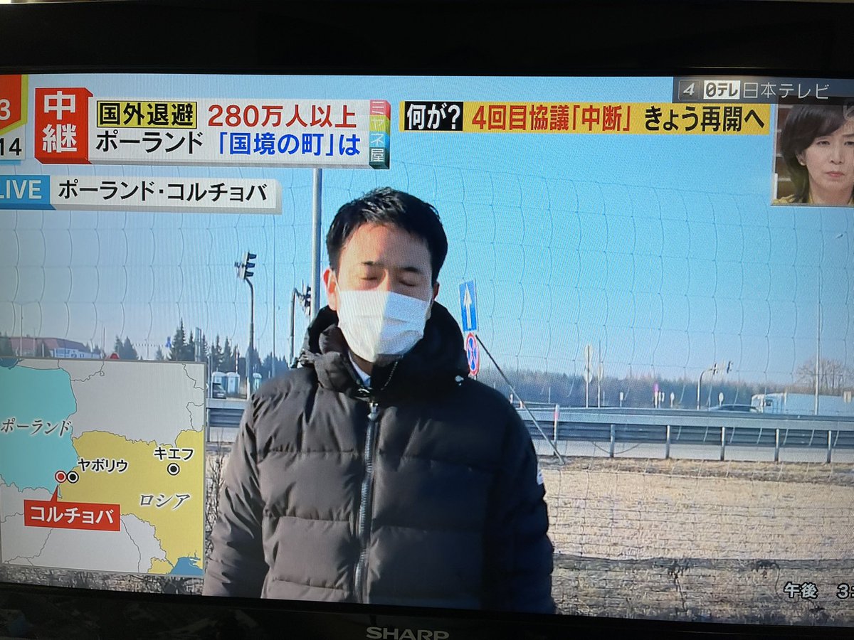 同日の放送では15時11分ごろ、多くのウクライナ避難民が身を寄せる隣国・ポーランド国境の町から中継映像が流れた。この際、画面左下にウクライナとポーランドの地図が表示されたが、ウクライナの国名が「ロシア」と表記されていた。この地図は20秒ほど表示された後に消え、国名が「ウクライナ」に訂正された新たな地図が表示された。
