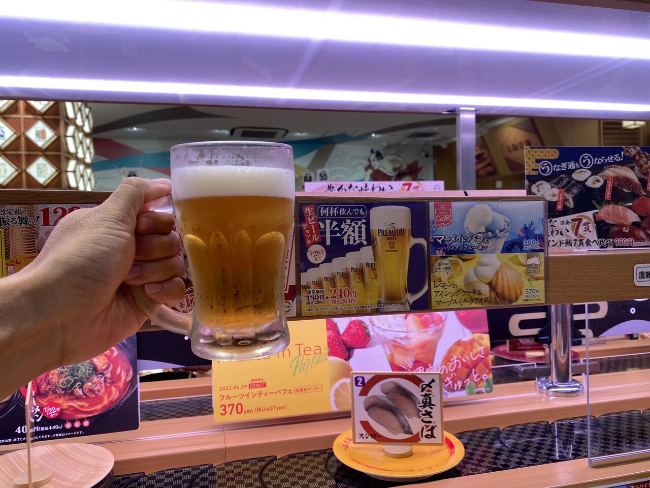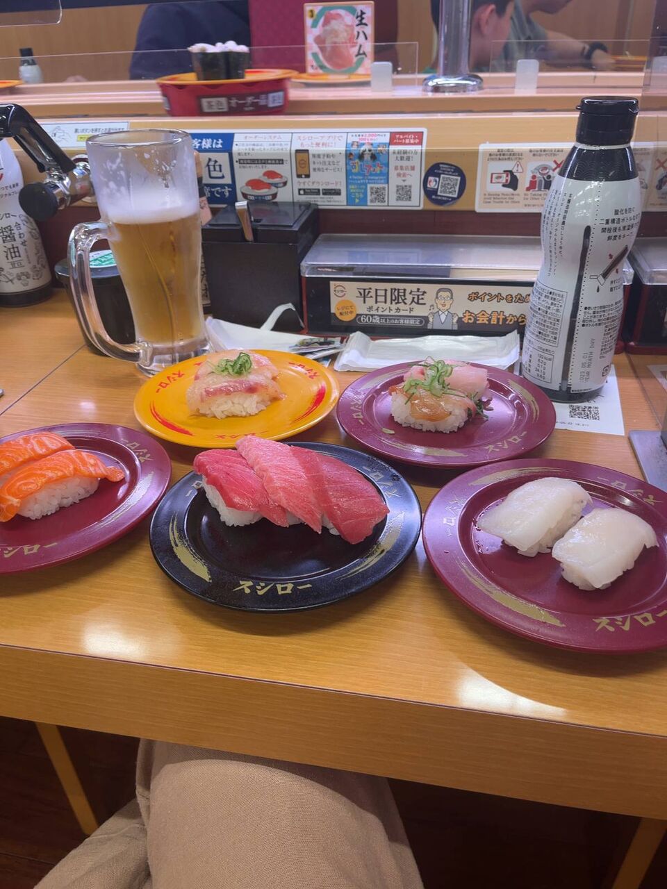 私も昨日半額ビールにスシロー行きました😂少し小ぶりですよね。
