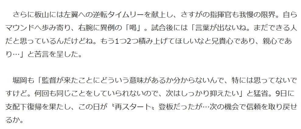 マウンドにわざわざ原が来た意味が分からないのもすごいし次があると思ってるのもすごいな