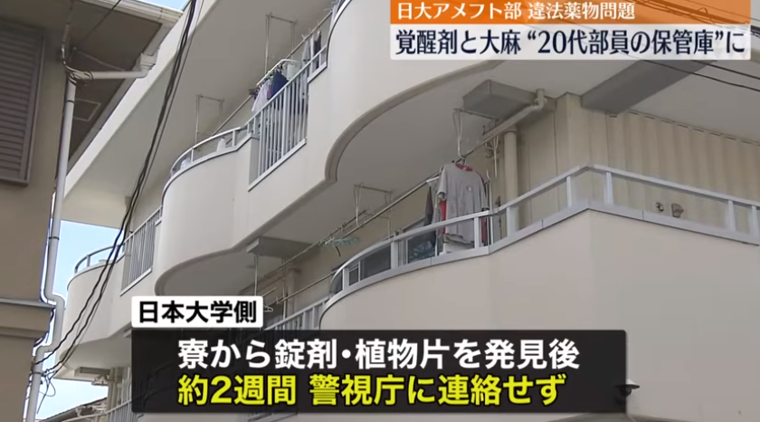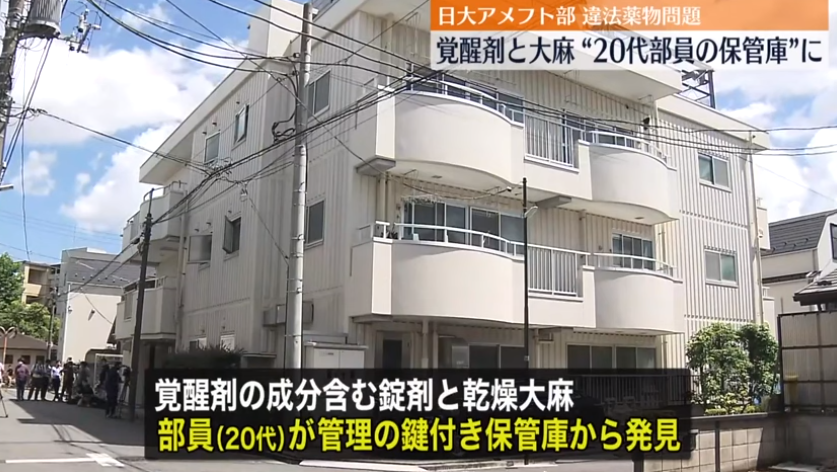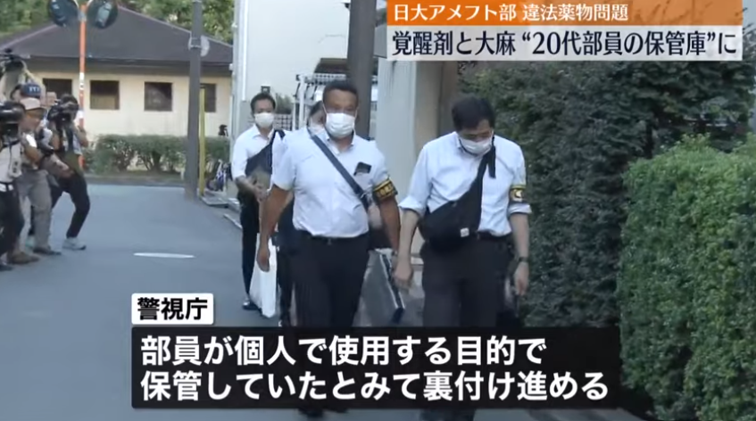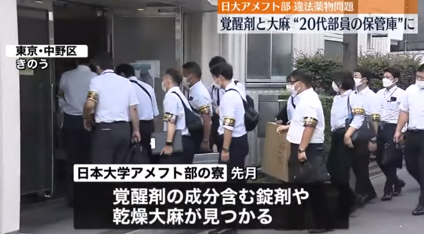 先月、東京・中野区にある日本大学アメフト部の寮から覚醒剤の成分を含む錠剤や乾燥大麻が見つかり、警視庁は3日、寮を家宅捜索しました。