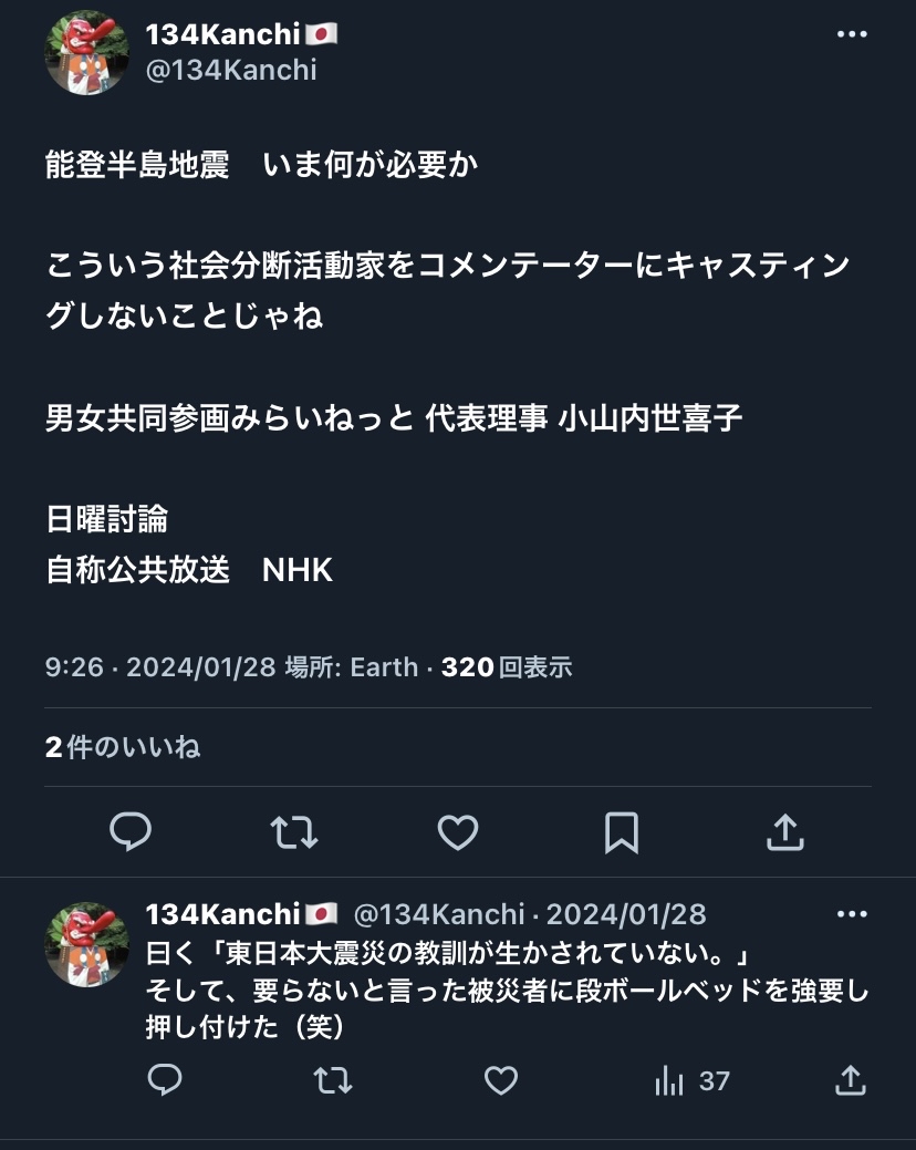 わざわざフェミ思想押し付けるために被災地襲撃すんの邪悪すぎるやろ