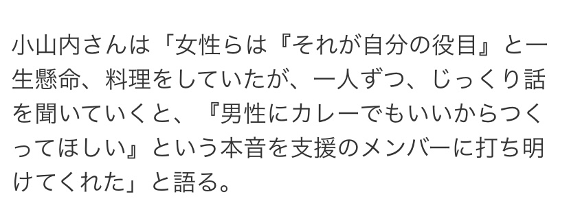 >「仕事や家の片付けがあるからなのか、避難所には日中、働き盛りの男性の姿が見えなかった。残っているのは高齢者が多く、体を動かしているのは30~50代くらいの女性らが中心だった」