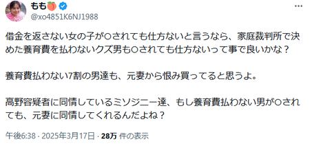 養育費バックレは女の方が割合高いんだよなぁ
