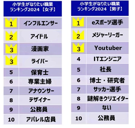かといって高校生の「会社員」とかが上位に来るランキングもそれはそれで問題やと思ってるわ